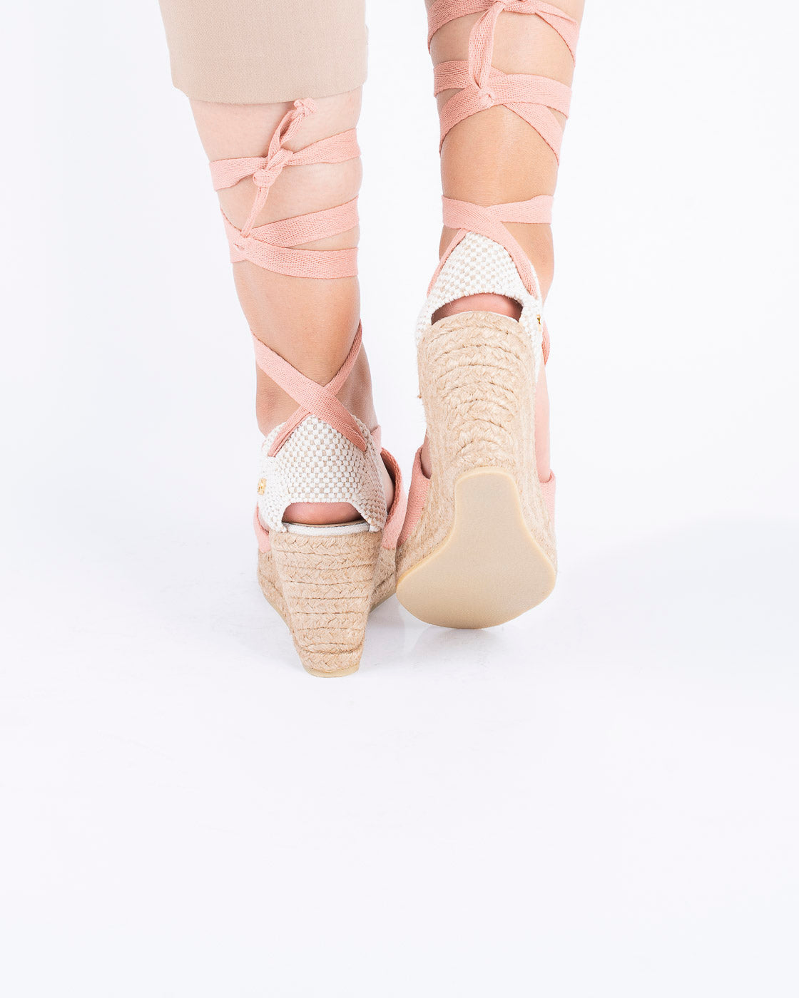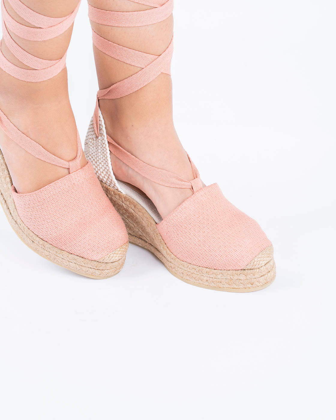 La capellada en algodón abraza el pie con suavidad, y las tiras largas permiten un amarre elegante alrededor del tobillo, brindando seguridad y un estilo romántico.