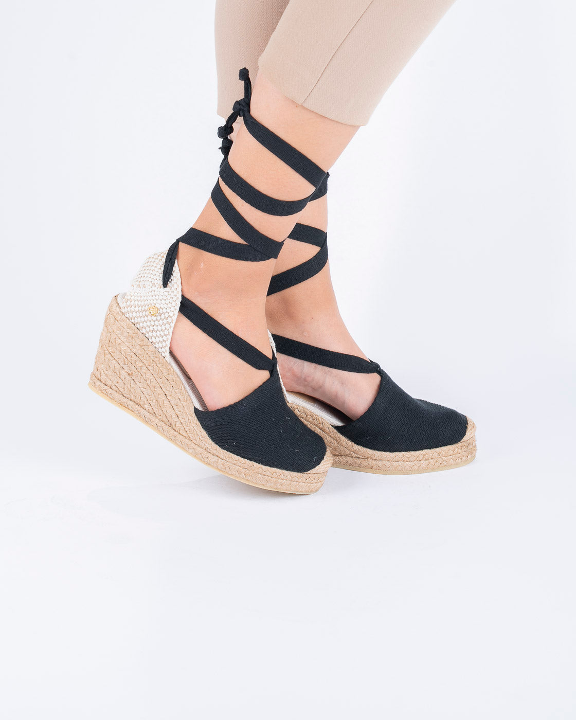 La Alpargata Noche Serena combina la sobriedad del negro con el encanto artesanal del yute, creando un diseño elegante, versátil y perfecto para cualquier ocasión. Su plataforma forrada en yute de la mejor calidad aporta altura sin sacrificar comodidad, mientras que la talonera en textil tejido agrega un toque auténtico y fresco.