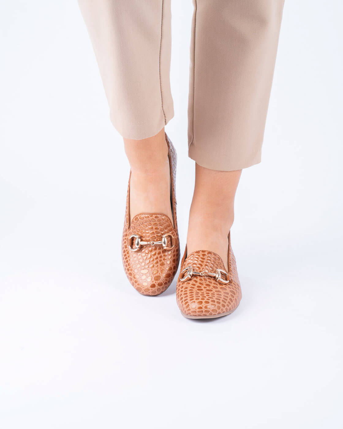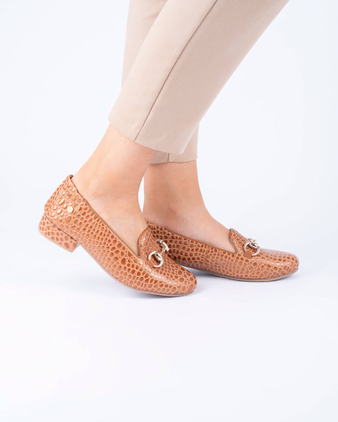 La Baleta Liria está elaborada en cuero con capellada perforada en láser, brindando una textura ligera y extra suave que se adapta perfectamente al movimiento del pie. Sus ribetes en cuero folia aportan un brillo sutil que realza su diseño, mientras que el tacón de 2 ½ cm ofrece una altura equilibrada para el día a día.