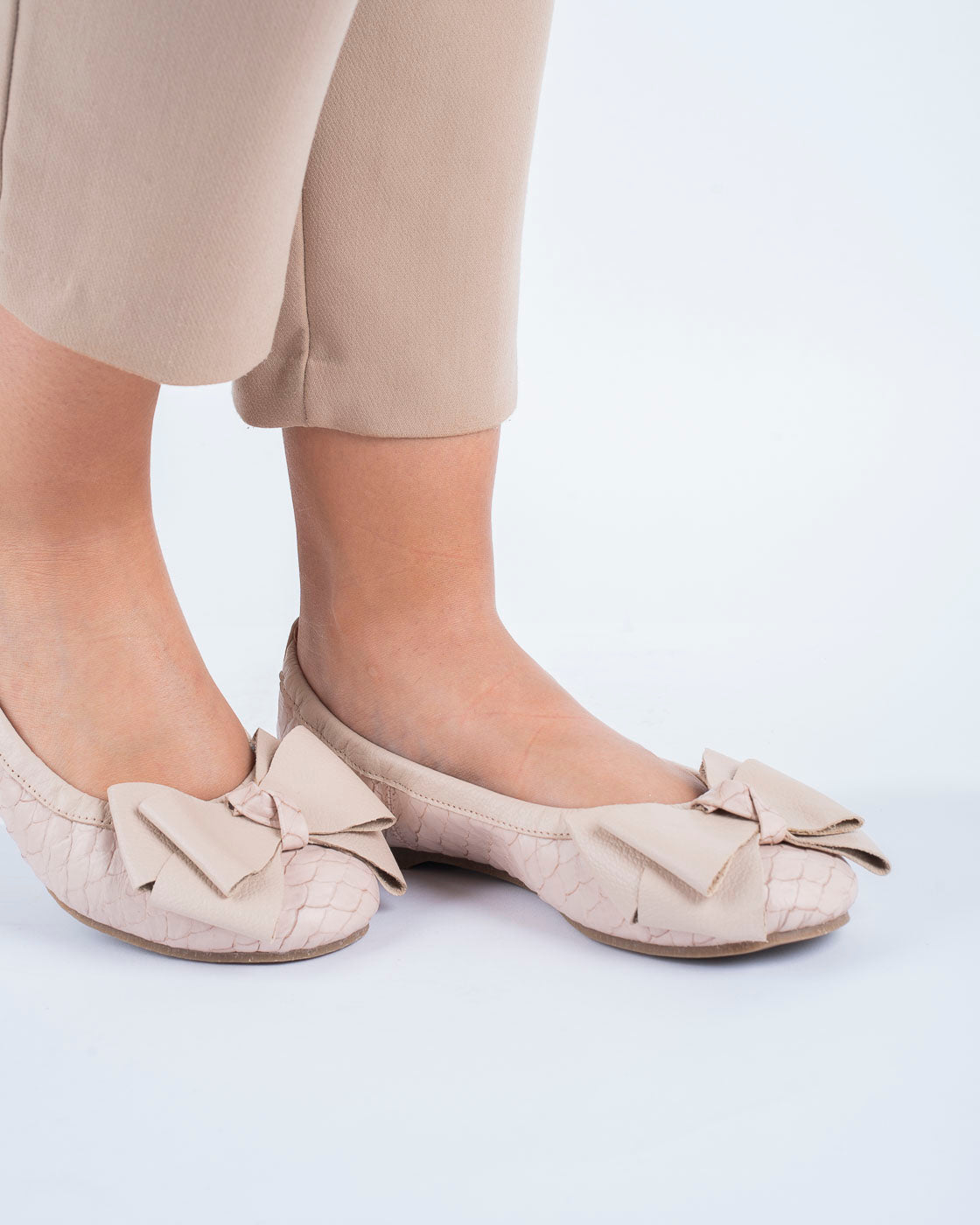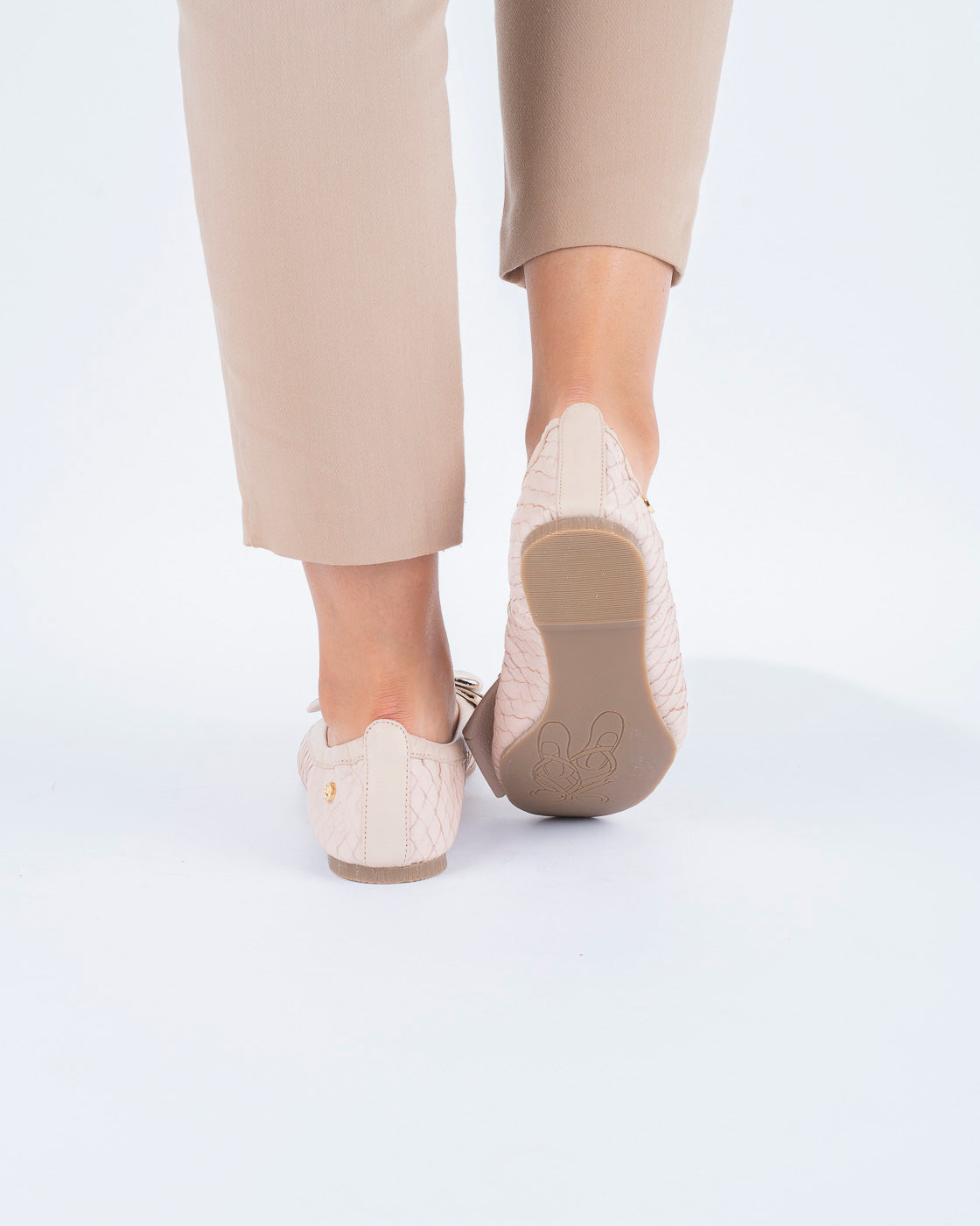 Diseñada para caminar con intención. Esta baleta de horma redonda abraza el pie con suavidad y equilibrio. Su moño cosido no solo es un gesto estético, sino una decisión funcional que garantiza mayor comodidad y estabilidad al caminar. Incorpora plantilla confort y suela de goma a tono con resorte, logrando un ajuste flexible y consciente que acompaña cada paso. En Khala, lo que se cuida, trasciende.