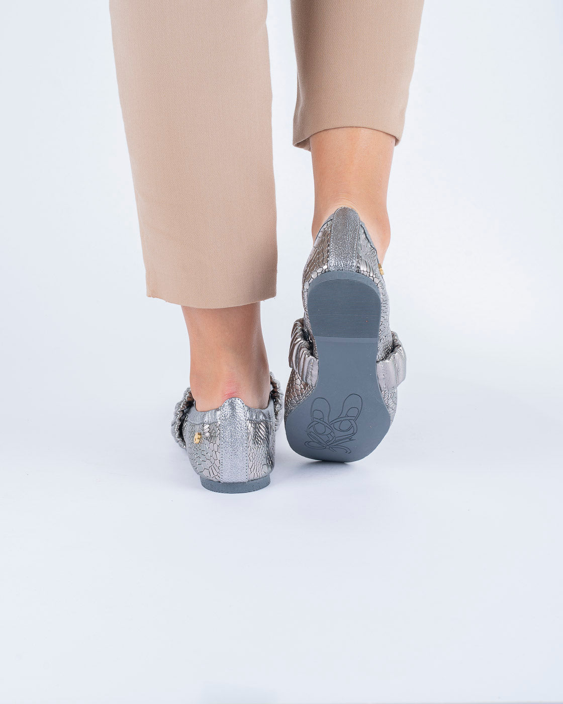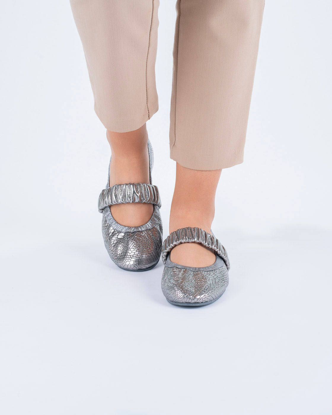 Equilibrio perfecto entre textura y suavidad. Esta baleta de horma redonda combina cuero texturizado con textil extrasuave, logrando una pieza cómoda y sofisticada. Su ajuste resortado se adapta al pie con seguridad, mientras la plantilla confort y la suela antideslizante acompañan cada paso con firmeza. Un diseño pensado para caminar con confianza y ligereza. En Khala, lo esencial también brilla.