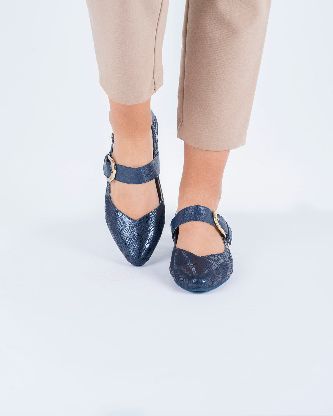 Diseño elegante de horma puntuda. Esta Mary Jane combina la suavidad del cuero liso con el carácter del cuero Folia texturizado, logrando un contraste auténtico y sofisticado. Incorpora hebilla lateral que permite un ajuste preciso y cómodo. Su suela nude a tono refuerza la armonía del diseño, cuidando cada detalle con coherencia y equilibrio. Una pieza pensada para acompañarte con distinción en cada paso.