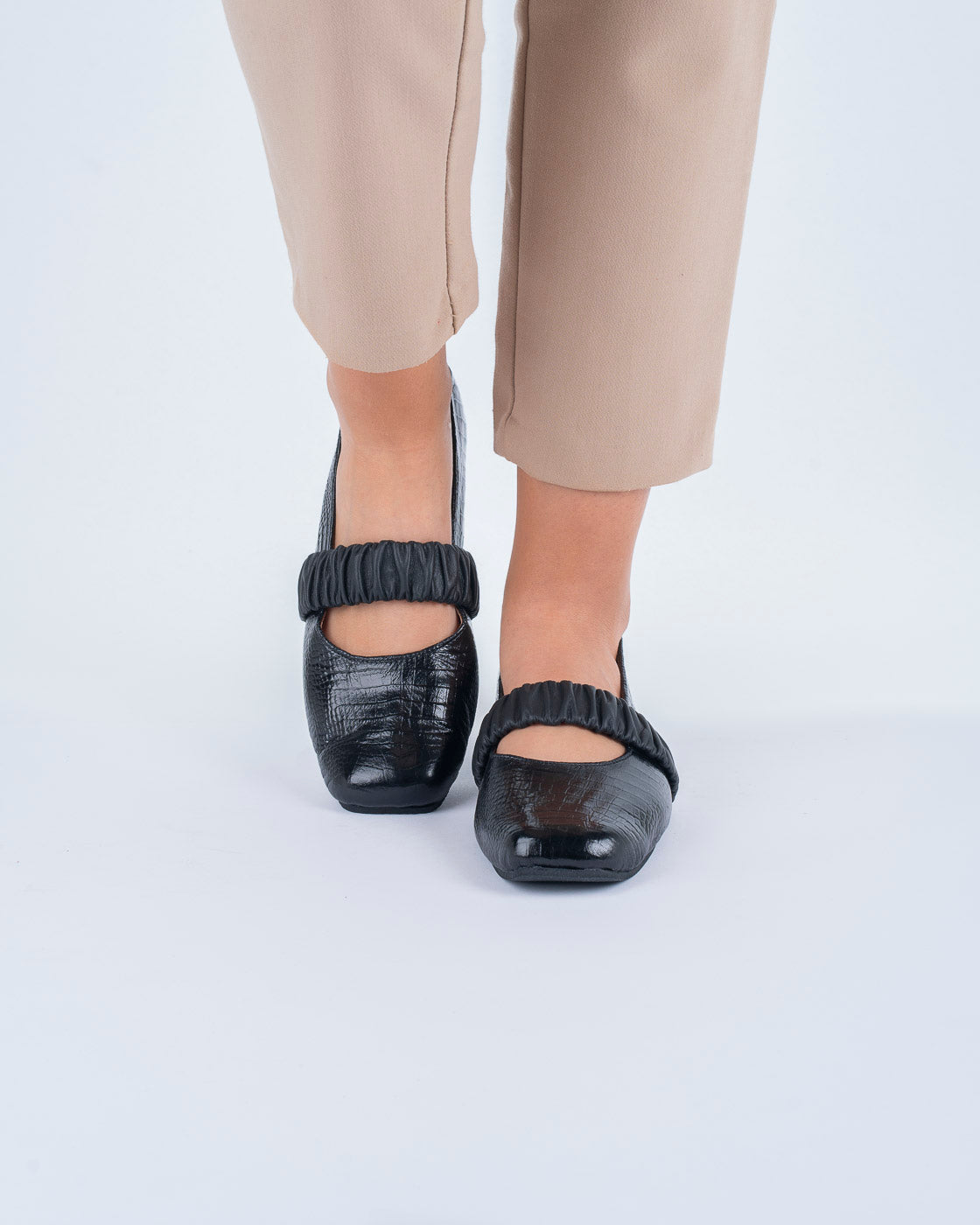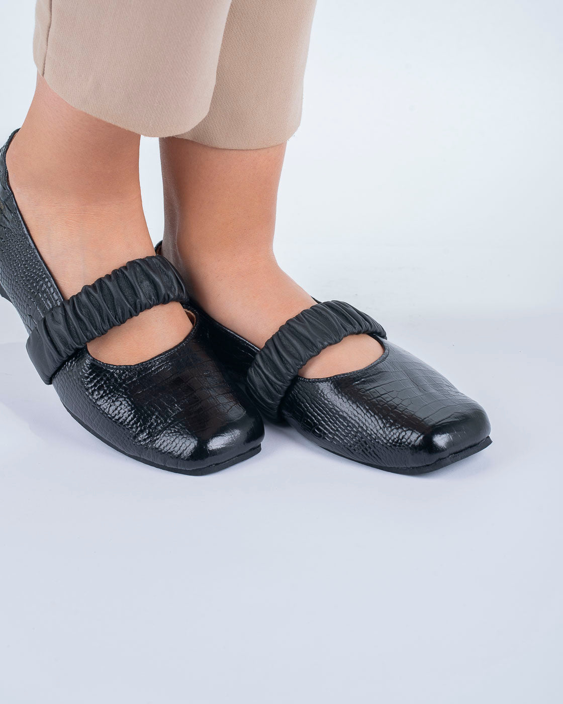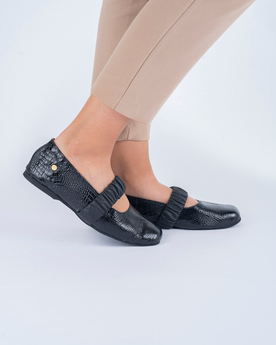 Una pieza que equilibra textura y suavidad. Esta baleta negra presenta un cuerpo en cuero Folia texturizado y detalles en cuero textil que aportan una sensación extrasuave al contacto. Su horma cuadrada brinda estabilidad y carácter, mientras el minitacón acompaña el paso con comodidad consciente. La suela de goma negra, a tono, garantiza un caminar firme y seguro. Diseñada para quienes entienden el estilo como una forma de coherencia.