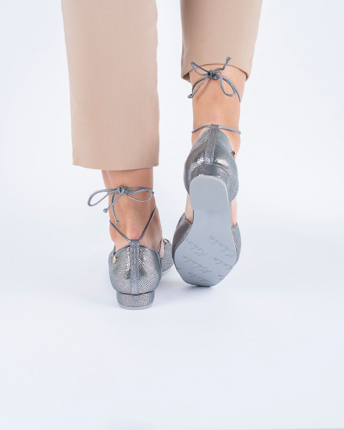 Una silueta que honra la elegancia serena. Confeccionada en cuero tipo Folia, suave al tacto y delicado con la piel, esta baleta de horma cuadrada incorpora un sutil tacón de 1 cm que acompaña cada paso con equilibrio. Sus tiras romanas envuelven el tobillo con carácter y feminidad, mientras la suela de goma garantiza firmeza y conciencia al caminar. Una pieza que conecta historia, diseño y comodidad.