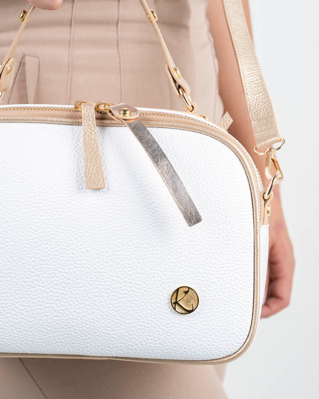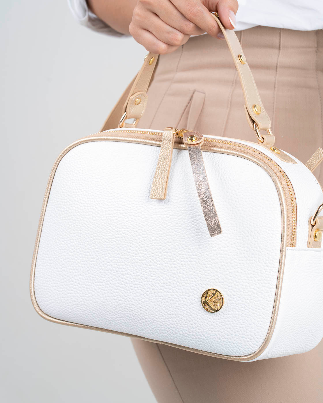 Material: Cuero liso combinado con cuero dorado