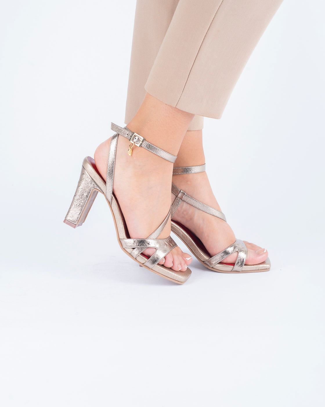Imponente tacón paleta de 7.5 cm en tono bronce. Diseñada con horma cuadrada que aporta estabilidad y una plantilla acolchonada pensada para acompañarte con confort durante todo el día. Su suela antideslizante brinda seguridad en cada paso, mientras el forro interno en rojo revela un detalle íntimo y sofisticado que habla del cuidado en cada terminación.