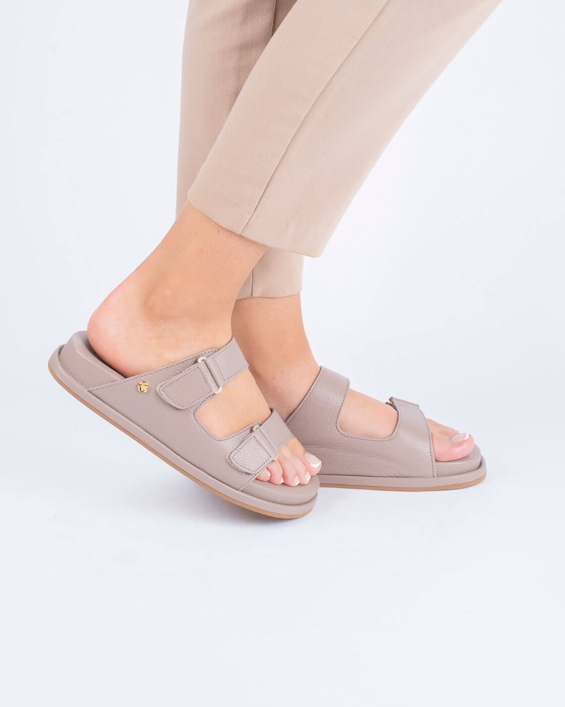La Sandalia Moara está elaborada en cuero color moka texturizado, con un diseño que combina estilo y funcionalidad. Su plantilla extrasuave ofrece una sensación acolchada en cada paso, mientras que las tiras ajustables con velcro garantizan un calce perfecto y adaptable para todo tipo de pie.
