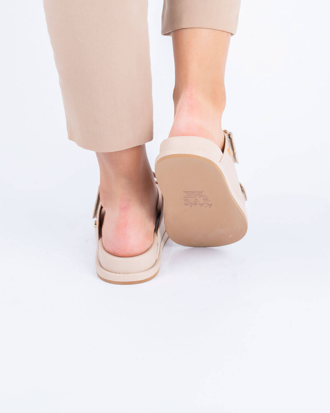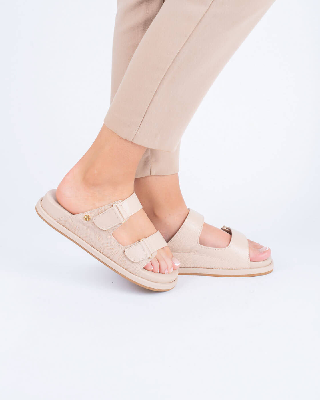 La Sandalia Tauva está elaborada en cuero color taupe texturizado, un tono versátil que combina fácilmente con cualquier look. Su plantilla extrasuave brinda una sensación de bienestar en cada paso, mientras que las tiras con cierre en velcro permiten un ajuste firme y adaptable a todo tipo de pie.