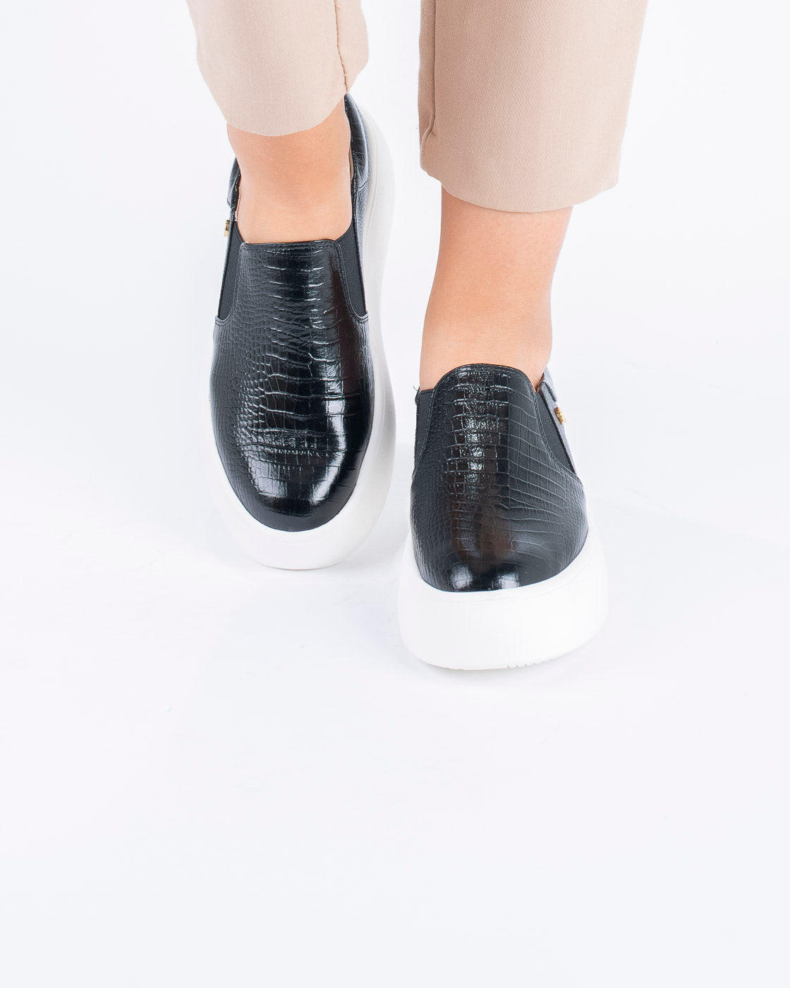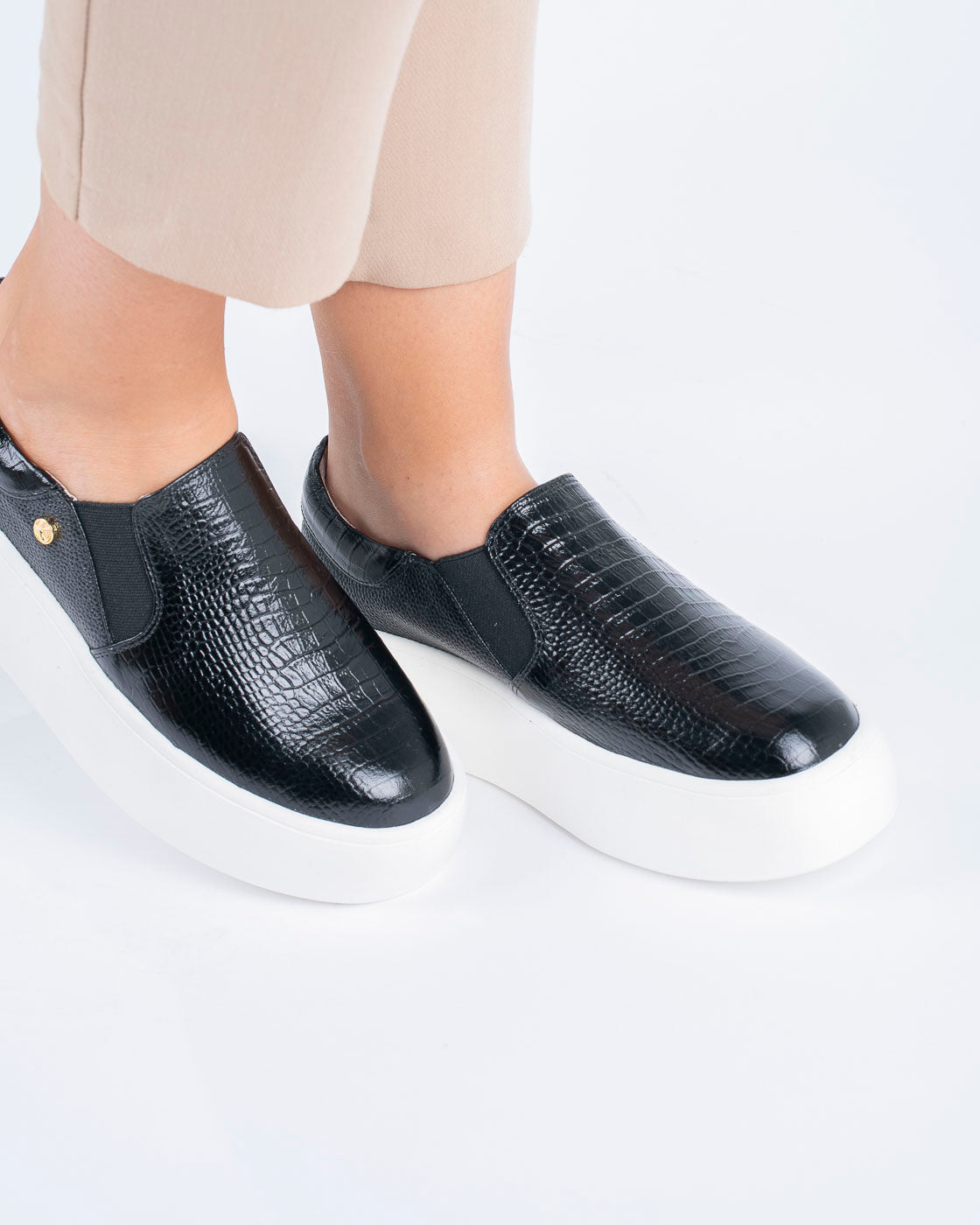Los Tenis Noa Negro combinan diseño moderno y materiales premium para ofrecer una experiencia de confort excepcional. Confeccionados en cuero tipo cocodrilo, destacan por su textura elegante y su estilo urbano atemporal.